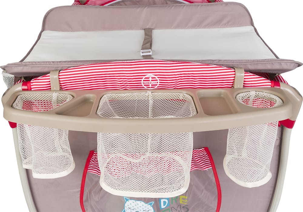 - Farklı yaşlar için 3 ayrı kat kullanım imkanı: Katlanabilir seyahat yatağı (0-36 ay), Ara kat (0-12 ay), Alt değiştirme ünitesi (0-12 ay)