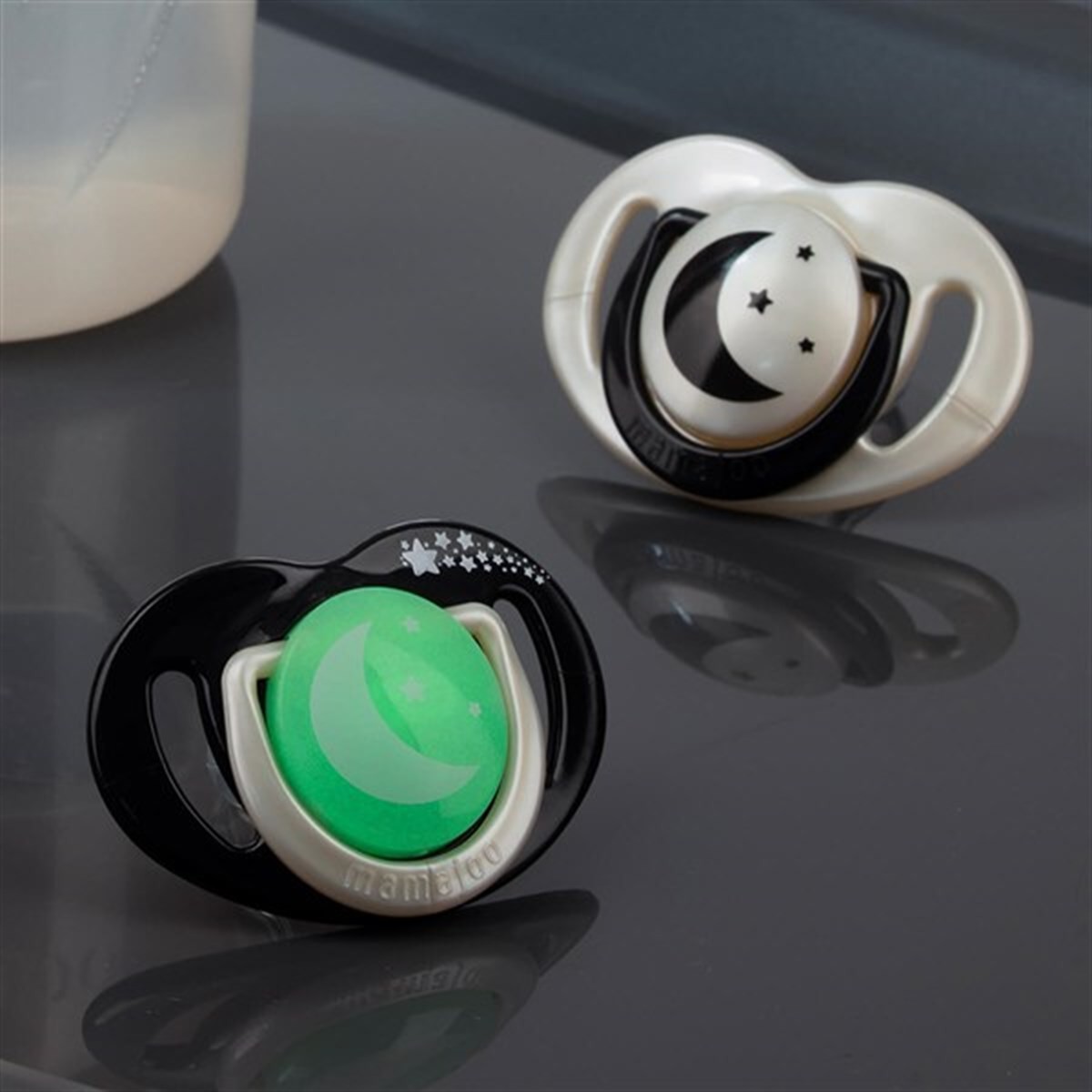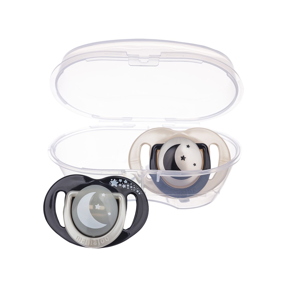Mamajoo Sterilizasyon & Saklama Kutulu İkili Desenli Ortodontik Black & Pearl / Gece & Gündüz Emzikleri, BPA ve Fitalat içermeyen yüksek kaliteli hammaddelerle üretilmiş, şeffaf, tatsız ve kokusuz silikon malzemeden yapılmıştır. Her yaş grubu için ideal yumuşaklıkta ve pürüzsüz yapısı sayesinde kolay temizlenir ve bebeklerin konforunu sağlar.