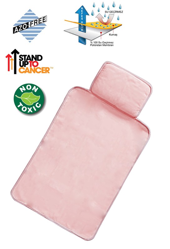 Alt açma bölümüne dikilmiş yastık, bebeğiniz için ekstra rahatlık sağlar. Bu yastık kısmının dışı havlu, içi ise yumuşak elyaftan oluşur. Ayrıca yastık, uyku yastığı olarak da kullanılabilir. Minderin geniş ebatları (83 cm x 45 cm) rahat kullanım için tasarlanmıştır. Katlandığında ise çantada az yer kaplayarak taşımayı kolaylaştırır. Böylece dışarıda veya seyahatlerde de pratik bir çözüm sunar.